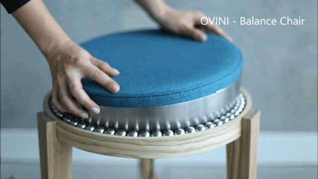 設計師 Weronika Żytko 所設計的凳子 OVINI Balance Chair,把坐墊安在一個倒過來的金屬圓碗中,圓碗旁還有一圈軸承,坐在上頭,不只能夠用腰部和屁股的力量,隨時調整坐墊的角度,還能 360 度旋轉,就好像變相的扭腰收腹操,無形間也讓坐在椅子上,變成和深蹲有得拼的最好運動。此外,因為身體隨時處於運動狀態,也能幫助腰椎維持自然曲線,與其他椅子相比起來,真的是比較「健康」!