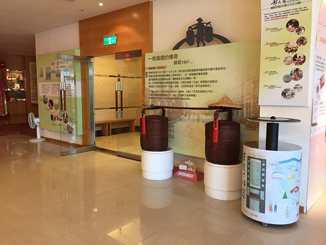 西元 1708 年,郭氏先祖由福建渡海來台落腳在台北士林。西元 1867 年,創辦人郭樑楨手工製作祖傳糕點,裝在竹籠裡,挑著一根扁擔於士林市場挨家挨戶沿街叫賣,就此開始糕餅生意。從無店招的小餅舖到現今家喻戶曉的百年名店,郭元益不僅是士林區具有代表性的百年老店,也是台灣歷史最悠久的糕餅店,更是台灣餅食文化的象徵,今裝置以挑扁擔的影像重現過往風華。