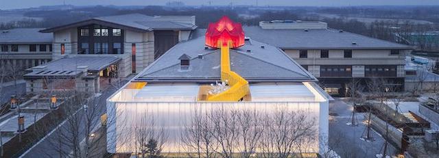 親子餐廳近幾年大行其道,實在是因為要找到一個父母與孩子都能輕鬆、舒服用餐的空間,實在太不容易了。在秦皇島,設計工作室 Wutopia Lab 就用輕巧又耐用的PC板,包裹住一間俱樂部舊有的外觀,並在新舊立面中,插入垂直綠化和大型的樓梯,為親子創造出一個魔幻現實空間。
