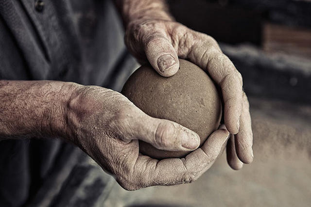 首先,要收集泥土。然後將泥土中的石頭分開,開始塑形,慢慢將泥土一層一層包覆上去,這個過程大約會持續30分鐘。