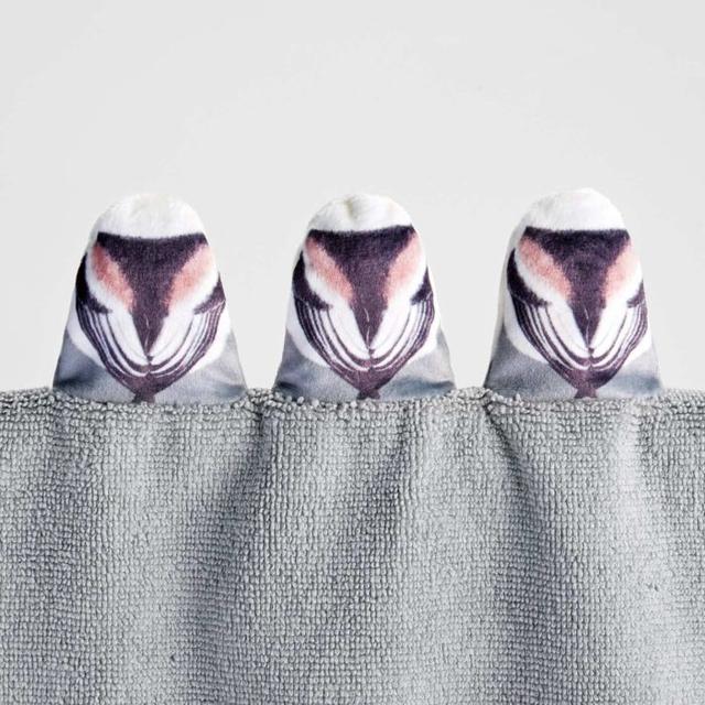 最棒的應用應該就是像這樣當做擦手巾使用,像這樣掛在需要的地方,上面彷彿站了3隻鳥兒在跟你對望打招呼,可愛到不行,簡直想馬上擁有!