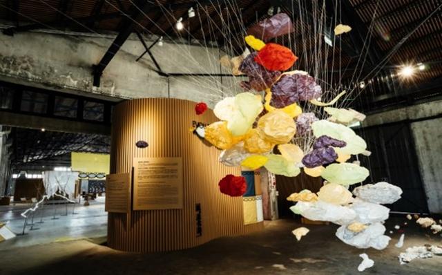 展覽所在的「有料倉庫」過去是散漿機房和存放漿料的倉庫,倉庫的挑高與寬闊營造出充滿開放感的空間。展覽規劃為三大展區,從「紙的知識考」啟程,第二步到「紙的創意學」感受紙張如何成為藝術家和設計師的靈感來源,最後則是鳳嬌催化室打造的「紙的自由式」。放眼望去,展出作品配合原倉庫的維度,各自在空間中突出了獨特的存在感;作品之間保留恰到好處的距離,維持了展覽空間的寬敞,也讓人仍能感受到過去倉庫的氛圍。