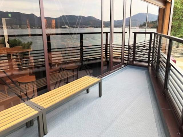 想要更清楚的看到海,甚至是遠眺嚴島神社的鳥居,也可以走到室外的這個座位區。