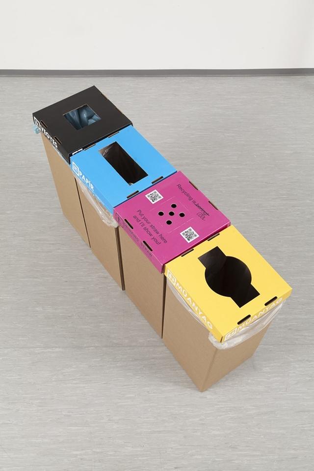 更重要的是,Huszár 在創作過程中,透過設置回收桶的方式,用最簡單的方式,邀請消費者回收用過的吸管,並在回收桶上附上 QR code,讓消費者可以追蹤後續的創作過程,等於是讓消費者直接參與回收、設計過程,還有什麼比這種從「源頭」開始的宣導方式,更具有影響力呢?