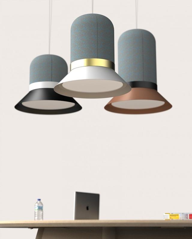 原來,這些可不是魔術帽喔!這名為 BuzziHat 其實是帽子造型的吊燈,且最厲害的是竟然還有吸音功能!BuzziHat 裡頭藏有高科技燈光模組,燈泡最大提供2,000流明亮度,光線亮度也可以自由調節,無論在辦公室、餐廳或書房都很適合。