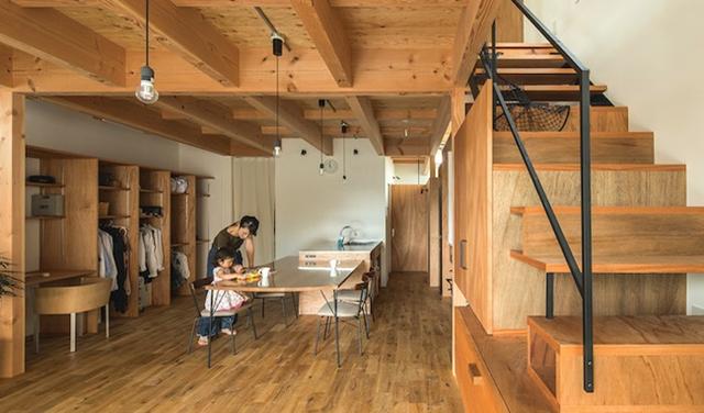 想在有限的空間內創造具備多重功能的儲物空間,不妨參考日本的 ALTS DESIGN OFFICE 建築設計事務所為一家五口規劃的住宅。為減少空間的浪費,設計師賦予儲物空間額外的功能,像是樓梯不僅可作為收納物品的空間,還可當做小孩學習用的桌子;廚房一體化的設計則營造出寬敞開闊的視覺感;巧妙地將收納空間融入二樓的牆壁中,使其不僅僅可存放物品,擺設裝飾品或綠意植栽,更成為日常起居的一部份。藉由對空間進行合理的高效利用,使其能空出更多場所供孩子遊戲和學習,並創造了多樣而豐富的空間體驗。