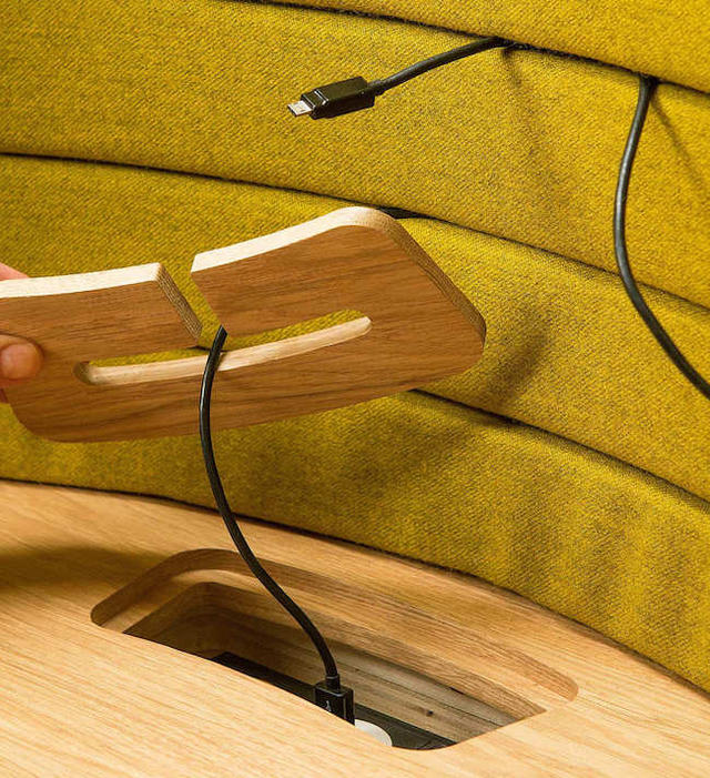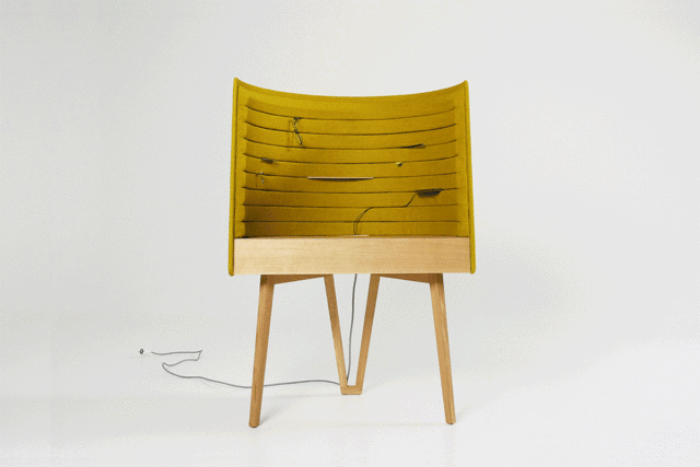 將一切集中到一個繭裡,像銀幕一樣的設計將使用者環繞非常直覺而動態的組織;可以將電線,電話,記事本和許多其他物品嵌入縫隙中以達到更多收納的空間,巧妙的隱藏在辦公桌前面簡直是一石二鳥,這使得辦公桌面沒有任何雜亂,並將手機帶來的干擾推向了更遠的地方。