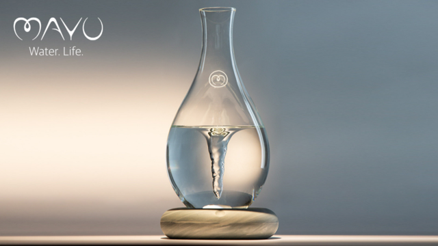 由 MAYU Water 所推出的同名漩渦淨水器,能夠讓容器中的水不停旋轉,產生漩渦,就好像紅酒醒酒一樣進行曝氣的動作,漩渦能夠將空氣引入水中,溶入新鮮的氧氣,進而達到淨水的效果,減少水中有害物質,喝起來也更加可口。