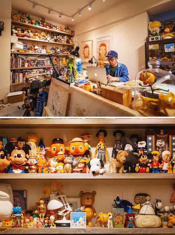 很拿手吉祥物設計的林彥良,本身就是公仔玩具蒐藏迷,他的工作室裡擺著來自世界各地大大小小的公仔!