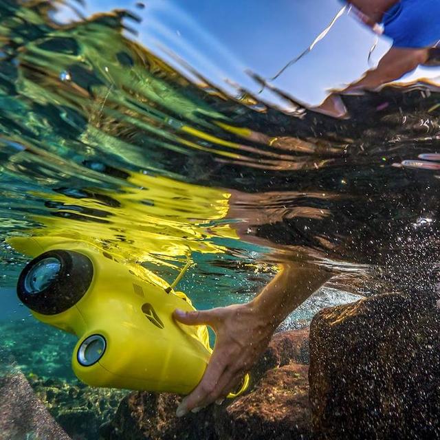 這項任務就交給 Gladius 智慧水下無人機吧!採亮麗醒目的鮮黃色外型呈現,搭載獨創的四驅推進器,可深潛 100 公尺深,能提高水中懸浮拍攝的穩定性,配備 4K 高畫質鏡頭、加上兩側可調節亮度的 LED 燈,能強化水下拍攝清晰度。