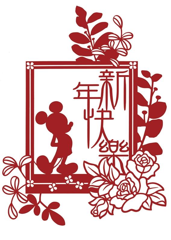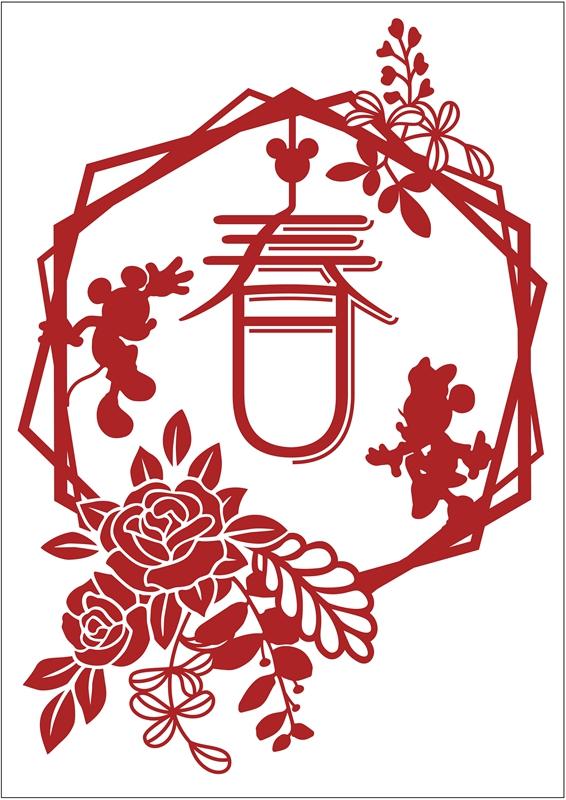 像是過年常見的大紅燈籠,上頭透過精系的剪紙藝術剪出花草與賀新春的字樣,米奇則以輪廓顯現、化作為燈籠的吊飾之一;在另外兩款窗花中,米奇與米妮又俏皮地或站或跳躍地在剪有牡丹與新年快樂字樣的窗櫺上,彷彿在俏皮地祝你新年快樂。今年過年就重拾這項傳統工藝,為家裡添點歡樂的年節氣息吧 !