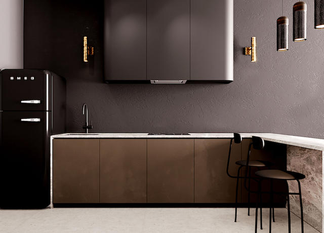 沈穩溫暖的咖啡色調能為居家氛圍塑一種靜謐感,這間由 RUDA Studio 設計的烏克蘭單身男子公寓,擁有一整面以玻璃和黑色烤漆鐵件製成的落地窗,大量光源為整體空間提供良好採光,城市美景也盡收眼底;