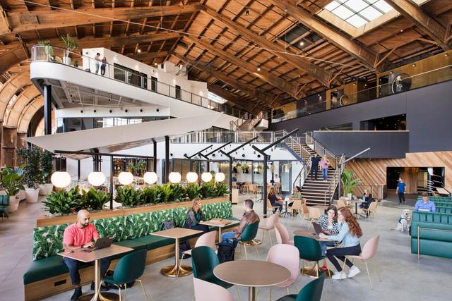近 1 萬 3 千坪的開闊式倉庫由美國建築師事務所 ZGF Architects 承辦,著手進行一系列的「 舊倉改造計畫 」,囊括了 Google 辦公室應具備的基本空間如:辦公室、咖啡廳、健身房,以及設計了一區可以容納 250 人的集會空間。