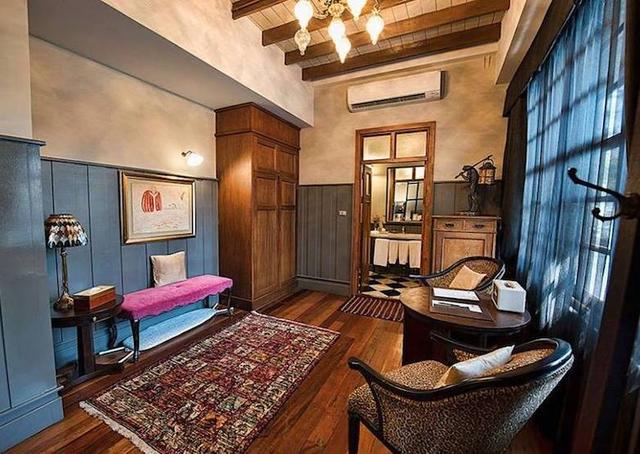 整間旅店只有 8 間客房,設計主題都不一樣,深色木質家具、鏽鐵件窗框、復古燈飾、老式電話等元素散發出懷舊典雅的氣息,兼作博物館的大廳展示出版社的歷史,老式打字機、舊報紙、古董印刷排版器具、手稿插畫等,見證了泰國出版業的鼎盛時期;此外,頂樓還附有空中花園、按摩浴缸和圖書館,在此遠眺曼谷老城區的繁華日常。