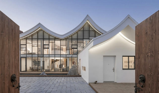 老宅翻新,守護家族記憶正是 DOES 設計事務所於此案想述說的概念,基於屋主期望重建祖宅,在歷經歲月的院門後,以庇護理念做為住宅輪廓,藉由雙手交疊意象勾勒屋頂外型,正面全採用通透玻璃穿引內外空間,並在院墻內添加暖光照明,入門後即產生新舊對映視覺效果。