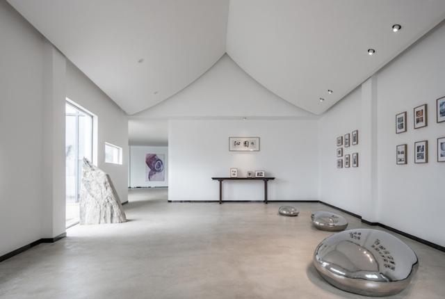 穿越宛如老家具博物館的祠堂,眼前佈滿淡雅水泥粉光質感,捨棄多於繁雜色彩與軟件,客廳僅以簡白螺旋木梯提增份量感,與後方穿透兩層樓的木質黑層板書牆,圍構靜謐的日式禪風氣息。