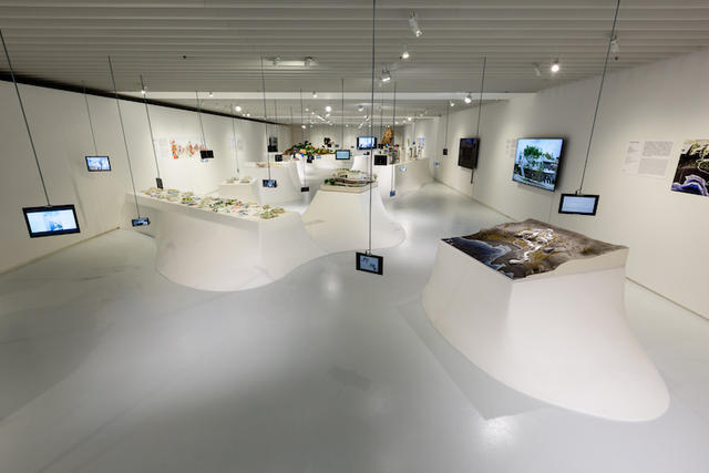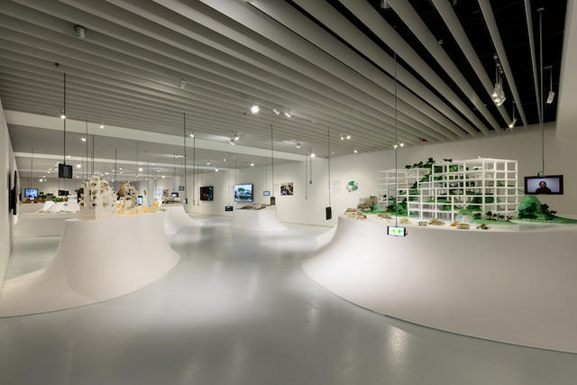 「諸島」展區,如海洋上漂浮的島嶼般的展場設計,展示12件作品模型、影片和照片。
