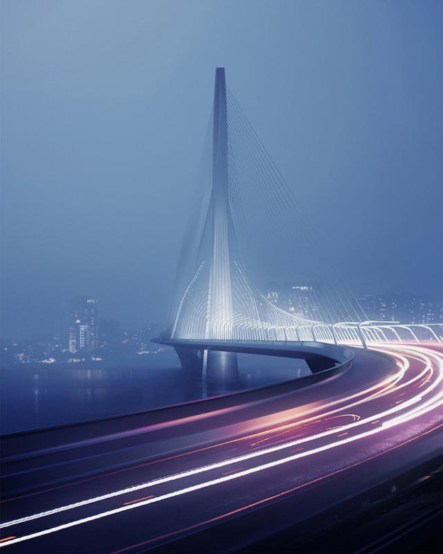 更重要的是,淡水河口的日落美景,並不會因為新淡江大橋而受到絲毫損傷,設計團隊使用單一橋塔的不對稱斜張式設計,來支撐 920公尺長的道路、軌道和行人甲板,盡可能降低對周遭自然景觀的影響,橋塔的外觀採用纖細風格設計,橋塔的位置也經過特別安排,不會妨礙水道,或是阻礙日落時分民眾的觀景視野,單塔的設計也能確保河床受到最小的干擾。完工後,新淡江大橋將成為全世界最長的單塔不對稱斜張大橋。而在此之前,就還請大家在塞車時多多忍耐,人生最難的是等待,但是.美好的事物通常都值得等待。