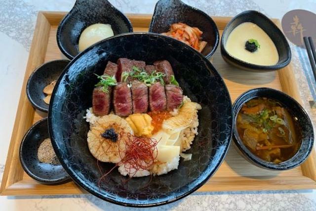 現場備有極上日本 A5 和牛及美國安格斯和牛牛排兩種牛肉可提供消費者現切現秤現烹調。第一步驟「 選 」,選定喜歡的肉品部位,現場的師傅也會專業的解說口感;第二步驟「 切 」,告知師傅想吃多少份量,肉品現切,呈現最新鮮食材的堅持;第三步驟「 烹調 」,現煎現炸現烤,展現師傅們的高超料理手藝。犇牛肉食堂除了現切現賣,還有類似日本定食與蓋飯的御膳套餐、御飯套餐,還有限量供應的極上 A5 和牛牛排三明治及 A5 和牛松露滑蛋吐司,絕對是牛肉愛好者必訪店家之一。
