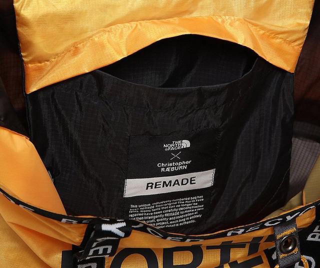 三款設計分別是兩款托特包,其中一款為大帆布袋風格,此外還有一款抽繩雙肩包,三款包袋的主色調全部為黃色。該系列的顯著特徵包括 The North Face 的標誌圖案與 logo,同時搭配 “ RÆBURN/RECYCLED ” 字樣的背帶。每款包還都設有內袋,提供額外儲物空間,更值得一提的是,三款包都可以摺疊後放入小包收納,非常方便。