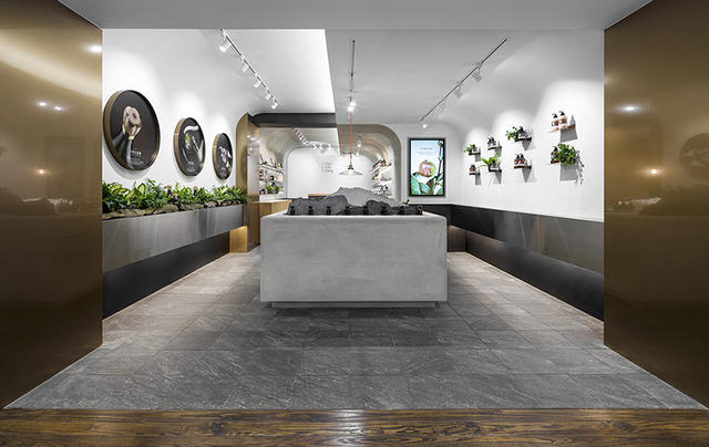 由外往內或由內向外看,會發現店面藉由「 內縮 」手法,創造類似「 洞穴 」的既視感,但這並沒有讓格局變得緊迫,對比大街上熙來攘往街景,反而有種鬧中取靜的微妙平衡。以空間為引、設計為飾,讓原本不大的門市看起來更深邃寬廣,透過景深效果創造視覺張力與感性並存之場域。