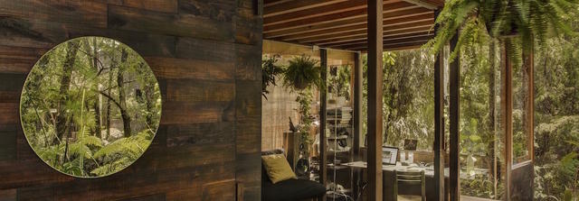 墨西哥建築公司 Talleresque 在墨西哥市中心地帶所完成的漂浮樹屋 Casa Flotante,三層樓高的住宅有著細長的身形,和周遭的樹木沒什麼兩樣,大片的落地窗,擋不住窗外的風景,也關不住屋內的燈光,在樹屋內,隨便一個抬頭就可以看見綠油油的景色,一點也沒有浪費到樹屋貼近自然的絕佳地理位置,而站在森林內,樹屋就好像燈塔一樣,引導著人們來到屋前。