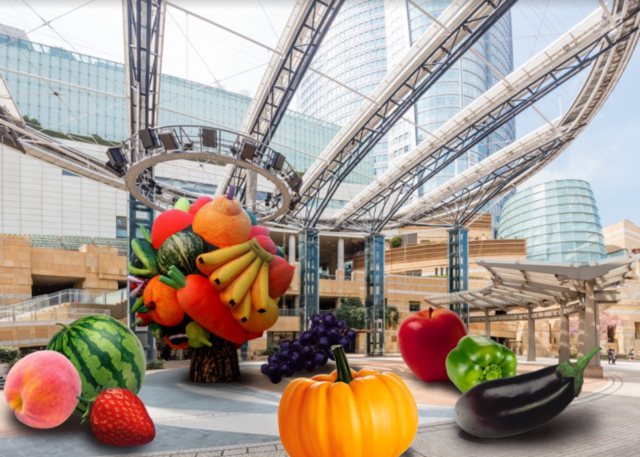 預計展出於六本木 Hills Arena 的《 FRUIT TREE 》,由其代表的合成塑料充氣雕刻手法,讓一顆顆色彩鮮豔、形狀飽滿的果實及蔬菜從枝頭綻放,將會場變身為魔法庭園熱鬧繁華的宴會場所,表現出自然與人工的美。