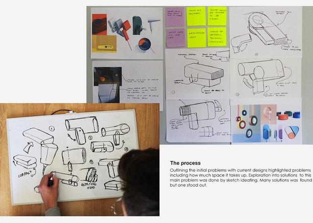 RED 機如其名,機身以紅色為基調,然後慢慢漸層成黑色,筆直的線條遇到轉角就多了點弧度,為吹風機增添了些柔和的質感,而從可旋轉式的吹頭,到握把上的按鈕,經由設計師精心調和的均衡比例,更凸顯出整台吹風機的美感,不過所有的外在條件在 Barnes 眼中,都只是次要的,RED 的最大特色在於可摺疊式的把手,讓整台吹風機能夠摺疊成四四方方的超薄長方體,無論是在外旅遊,或是居家收納,都能輕輕鬆鬆的在行李或是櫥櫃中,找到一個擺放 RED 的地方,而不必擔心佔用或浪費太多空間。如果嫌每天都要從櫃子中拿進拿出有點麻煩,那麼,摺疊後也能直接立起來,變身為帶點現代感的擺設。