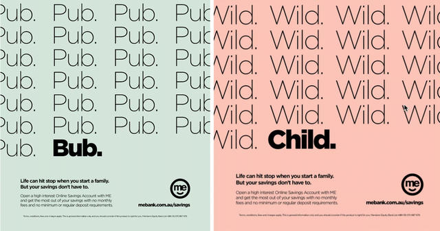 澳洲儲蓄銀行 me bank 為了避免有子卻無錢的窘境,他們設計了一組平面廣告,用幽默的方式告訴你,「只要記得儲蓄,就能從容面對」!