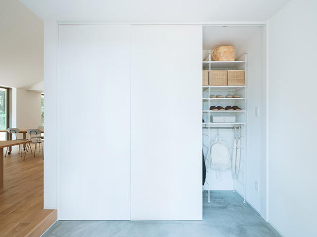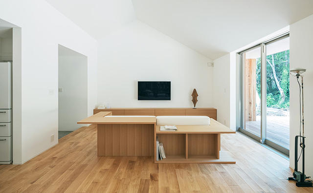 另一特點就是能完全收納的全開式落地門窗,將落地窗打開後,沒有任何段差的木造平台串連起室內外空間,生活場所瞬間大一倍,盡情享受無拘無束的開放感。