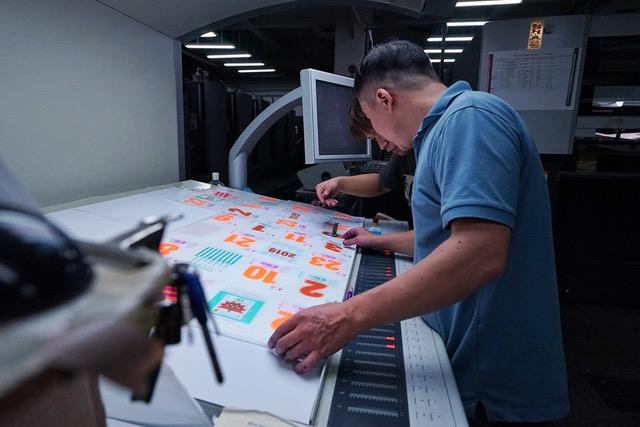 而每年市場期待的顏色變化,Five Metal Shop 打破過往選彩的數量限制,從每天追著跑的垃圾車黃、盥洗台上的牙膏輕盈藍、讓人流口水的烏魚子紅、小時候滿滿記憶的⻘箭口香糖薄荷綠......這些來自生活中的色彩啟發,最後選定全新 5 霓虹色+ 2 金屬色 + 1 粉彩色 + 2 特殊色,10 個 Pantone 專色,讓 2020 年墨色跟著日子超展開,也再次不客氣地挑戰印刷師傅在調墨和紙性顯色的好功夫。