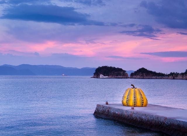 1994 年時,草間彌生改變了南瓜雕塑的表現形式,這回她把南瓜塑造成巨大的獨立雕塑,佇立在直島倍樂生藝術之地( Benesse Art Site ベネッセアートサイト直島)的碼頭盡頭,這件作品不只讓直島開啟了現代藝術聖地的轉型過程,也奠定了草間彌生當代藝術大師的地位,和後續露天雕塑作品的基礎。