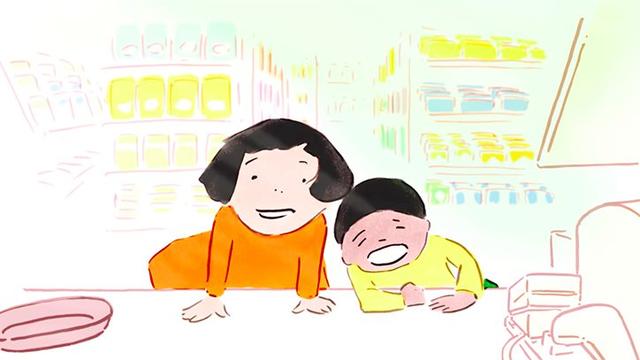 不過這不是吉卜力第一次與 Lawson 合作廣告,早在 2001 年時,雙方便曾合作過,而且事實上,這次的廣告還是前次廣告的延伸。在前次廣告中,與父母一起到 Lawson 購買電影票的小女孩,在這次的廣告中,已經成為 Lawson 的一員,廣告從他親切的說著「歡迎光臨」開始,然後店員們親切的與客人打招呼、為客人結帳,最後是開開心心跑到店裡的小孩,一邊撐著櫃台跳起來,一邊模仿著店員講話,店裡的氣氛十分溫馨,就好像是一家人一樣和樂融融。