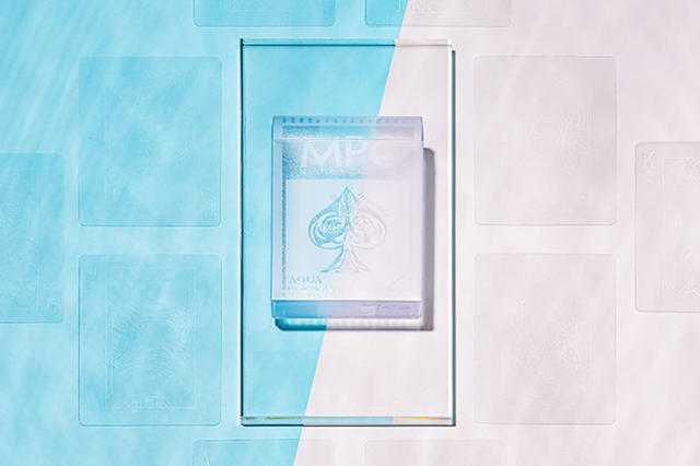 從數字牌到上頭有國王皇后圖像的娃娃牌,Aqua Deck 水色撲克牌通體透明,牌面有宛如浮刻藝術的光澤壓紋效果,光線下透明牌面閃著碎光,令人不住聯想到陽光灑在清澈水面上的閃爍光影。