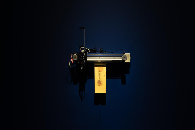 許悔之的作品〈字,療。〉透過「字」與「心」書寫行動演出,提醒著文字如何讓人們沉思冥想與擁有更美好的世界。