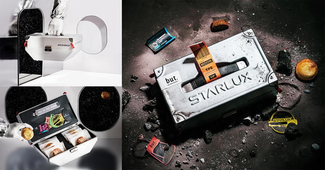 「星宇箱#STARBOX」選用 but. 最經典的「濃厚奶油餅乾」及「生乳酪蜂蜜海鹽」雙口味甜點組合(每種口味 4 入,共 8 入)。濃厚奶油餅乾可品嚐法國頂級艾許奶油(ÉCHIRÉ BUTTER)與台灣嘉義洲南日曬鹽的異國結合 ; 生乳酪蜂蜜海鹽則加入了台灣霧峰蜂蜜,鹹甜滋味,創造出多層次口感。