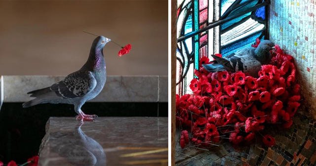 從去年十月以來,澳洲戰爭紀念館(Australian War Memorial)的員工就開始發現,擺在無名澳洲士兵之墓(Tomb of the Unknown Australian Soldier)的罌粟花會默默的消失,一開始還有點摸不著頭緒,後來才發現,原來是有一隻鴿子把罌粟花叼走,在彩色玻璃窗窗台上小心的築巢。由於鴿子過去在戰爭時期,時常擔任通訊官的角色,協助士兵傳達重要訊息,因此這個意外的發現,對照鴿子過去在戰爭時的角色,反而令人十分驚喜。