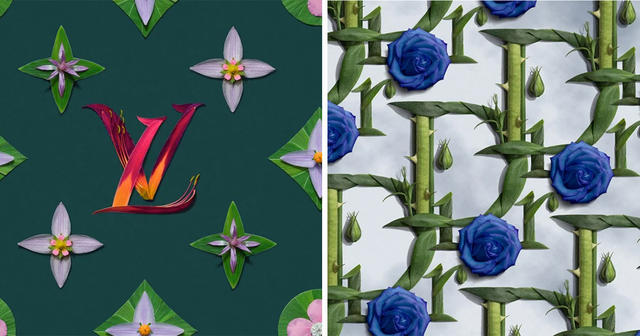 藝術家井上羅來(Raku Inoue)出生於東京,在加拿大蒙特婁長大,他十分擅長用花草植物創作出精緻又複雜的視覺效果,特別是 2017 年他在 Nature Insects 系列作品中,以花卉、葉子拼湊出栩栩如生的甲蟲、蝴蝶等昆蟲,十分令人驚艷。最近他所推出 Natura Patterns 系列作品,則是透過同樣的手法,重現知名時尚品牌的 logo 和 monogram 經典圖騰,再次讓人見識到他徜徉於大自然的創作功力。