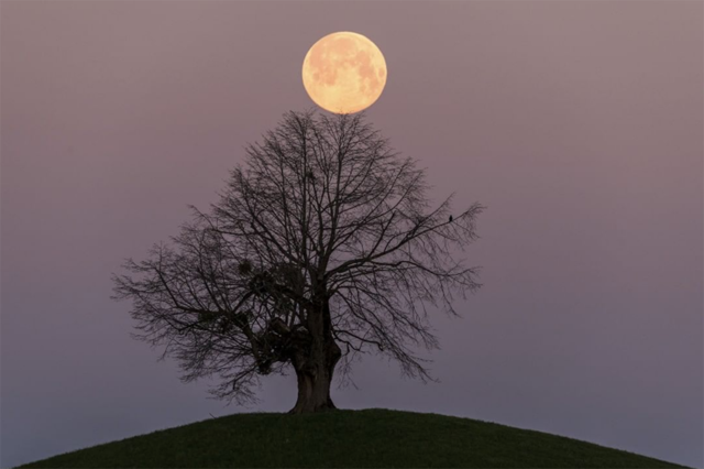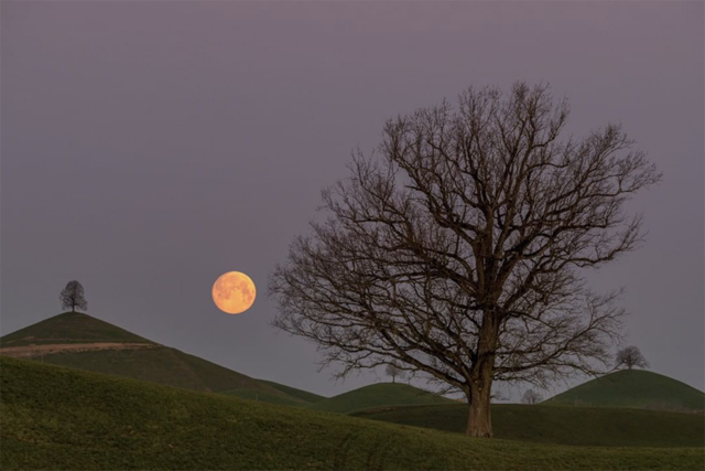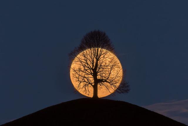 瑞士攝影師 Bernd Nowack 從少年時期,便開始徜徉於攝影的世界,他經歷過在暗房中沖洗黑白照片的膠卷年代,也跟上現在數位化的潮流,運用數位技巧來完善影像畫面。他十分喜愛以風景、大自然與光影塗鴉為主題,利用長時間曝光、光影表演藝術、日軌攝影等特殊技巧,讓畫面更具有張力,有時他會遊蕩在 Shilwald 森林中,細細觀察大自然的每一個微小細節,有時他則沉溺於日夜交替的瞬間,在不停轉變的光線之間,捕捉最完美的畫面。而他最為人津津樂道的作品之一,就是這張滿月照——橙色滿月緩緩升到山頂上,不偏不倚的落在獨自佇立於山頂上的樹身後,溫暖的月光與形單影隻的樹,這兩個看似不相關的元素,卻和諧的融合為一體。