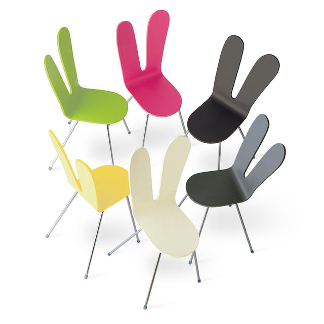 俏皮「兔子椅」出自日本傳奇建築師組合 SANAA 妹島和世&西澤立衛 之手,左右不對稱兔耳勾勒出手繪感自然生動,富有彈性兔耳打破木質印象,貼近東方女性高度,提供不吊腳的舒適度。