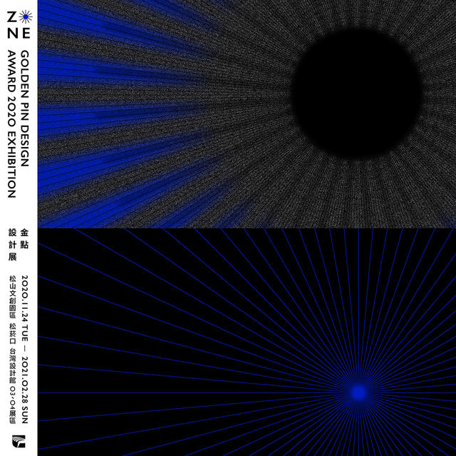 2020 金點設計獎頒獎典禮再度由 Bito 團隊策劃統籌,金點設計展則邀請新銳策展團隊「山陽山陰」操刀、莊皓擔綱視覺設計,並首度獨立命題,在年度典禮主題「2020」之下,提出「ZONE」為展覽主題予以對話,期望激盪出更多新觀點。「ZONE」具雙重涵義,既是物理上的「區域」,也是心理學中的「心流」,意指一種面對熱愛事物時全神貫注的精神狀態——在此凝聚專注力而沉浸忘我的狀態下,往往能將自身潛能與創造力發揮到極致。策展團隊山陽山陰指出,本次展覽以「ZONE」為主題,傳達出全球在 COVID-19 疫情影響下,雖改變了許多空間與社會關係,卻也是讓人們從高度集體化的社會回歸個體,得以重新思考自身、既有生活方式的機會,期待藉此展覽邀請大家重新凝聚專注力,積蓄創造新日常的能量。
