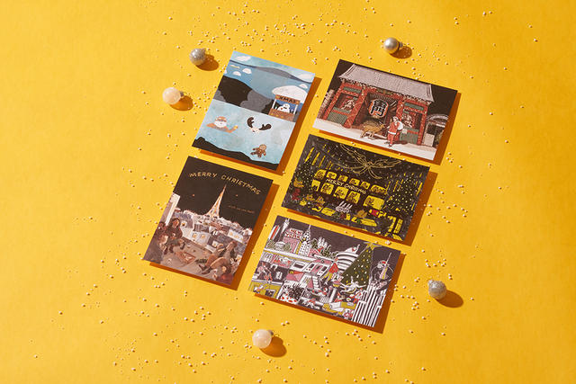 聖誕明信片款式共推出 17 款,包括可郵寄 15 個國家地區的國際配送款,可組裝成立體飛行機的明信片,讓你的祝福也坐上飛機直達海外,還有期待你回信款,讓朋友間的祝福來往更加完整,以及從 600 多件學生徵件活動中,獲選的 10 款優選,此外更與五位藝術家包括高妍 GAO YAN、Shihyu illustration、吳怡欣 yihsin wu、Pic.Nic、Deer Jan illustration 合作推出假裝出國款,包括日本、英國、美國、法國、冰島五大聖誕節必訪的景點,將這些國外景點利用投影科技實景互動,祝福飛行機內免費登機,一秒就可飛出國,不能出國的日子由我們為您服務,祝您旅途愉快!