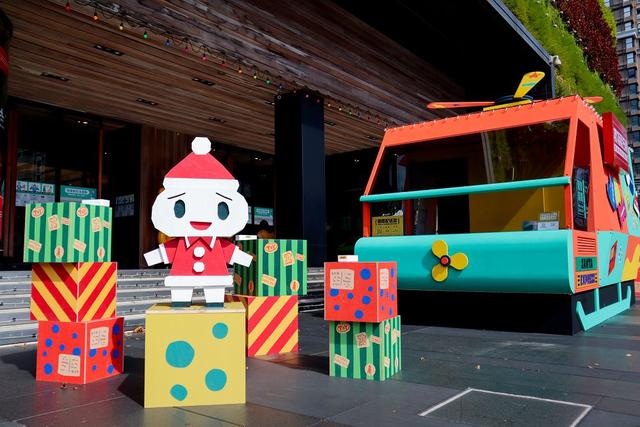 今年的聖誕樹以日本木雕藝術家創作的聖誕樹人角色為造型,延續在聖誕樹下放置禮物的傳統,特別將聖誕樹結合禮物包裝配送站服務,提供 4 種配送箱尺寸並附贈包裝貼紙,獨家設計的自助包裝素材,既使是手殘黨也絕對能勝任的 DIY 禮物包裝!一站完成的禮物包裝配送站,還提供寄送服務,不管是距離很近或很遠的家人朋友,一份親手包裝的禮物寄送,讓每一份心意都是獨一無二。