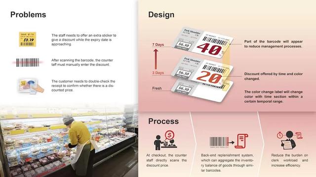 「我們希望通過這個小小的標籤,一舉解決消費者、收銀員、補貨和系統後端管理所面臨的難題。」James Dyson 2020 設計大獎官網上,團隊這麼描述「Barcodiscount」的設計過程。