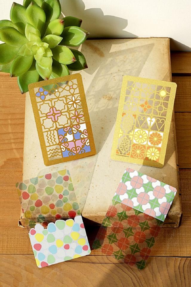 這次推出的鐵窗花和馬賽克磁磚透明悠遊卡,前者以燙金色描繪出鐵窗花的幾何圖形紋路,呈現出鐵窗花特有的金屬線條質感,搭配透明悠遊卡的特性,展現出鏤空效果;後者則選用了兩款最受歡迎的馬賽克磁磚樣式,直接將磁磚的顏色印製在上半部透明、下半部以白墨為底的悠遊卡上,在陽光照射下,上半部的半透明彩色光影,頗有歐洲教堂中常見的彩繪玻璃效果,而下半部則在白墨底的襯托下,讓磁磚顏色更為飽和,簡而言之,就是各有各的美。