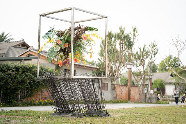 「解構窗花」座落在將軍之屋旁,在眷村人家的一隅,解構窗花透著窗花、光與影相互嬉戲,中心懸浮著盛開的文心蘭。藉由地面鏡子反射與燈光設計添加未來感,投射出過去回憶的同時也牽動著未來的決定。「心繫勝利」則位在星星廣場之前,Daniel Wong 以印花設計結合現代流行塗鴉文字於此作品中,三層愛心鮮花配置則由吳尚洋精心設計,賦予花藝設計的美感,刺激視覺新感官。