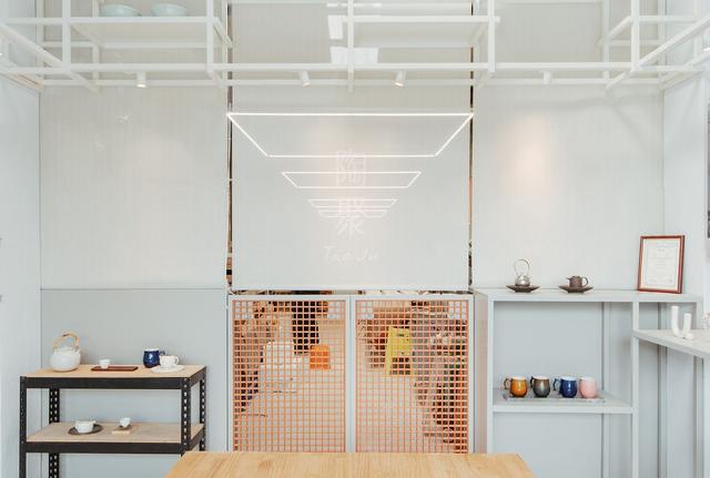 在陶聚品牌誕生的勝昌工廠,狹長型的空間可以輕易的一覽製陶所有流程,也一覽製陶過程每步驟細節的堅持。空間經過彡苗空間實驗聯手將展示區域與工廠空間以布簾分隔,調整工廠現有機具的配置增加使用的效率及空間密度,並重新配置燈光區分各個製程;前區透光玻璃展示陶聚作品,吊掛陳列架則將視線延伸導引至屋頂天窗,將鶯歌過往陶製品質樸樣貌的忠實體現。