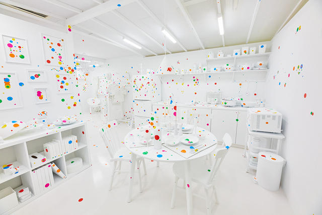 身為參與本屆盛事最重量級的「圓點女王」草間彌生,則帶來其自1960年代以來不間斷創作的經典代表作品「Obliteration Room」。做為互動裝置,參觀者將近到一處全是純潔白色的小屋,然而你可以用五顏六色的貼紙來改變純白空間,就如同作品名稱般,這間家具齊全的小屋正在一點一滴被消逝,而那些彩色圓點也象徵著每位參觀者的某部分心情,從完美無瑕的白色蛻變成閃耀繽紛色彩的有機屋宅。預約點此