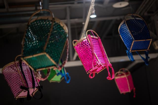 因現在於籐材的取得不易,在隨創的編織工藝當中,原民部落族人加入當代生活無處不在的塑膠材質,如實反應出當代工藝從物料端及面對到的變化。