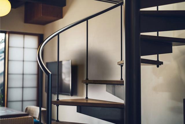 のぞむ家也備有到日本不能錯過的風呂,而且是能邊欣賞小庭園的露天風呂呢!而內部往二樓的樓梯與其他京町家不同,特別改用旋轉梯,讓屋內空間更大,配合上暗系沉穩的裝潢,讓傳統的京町家擁有不同的風情。